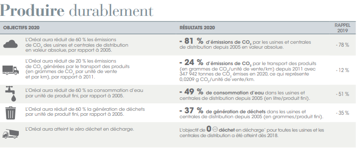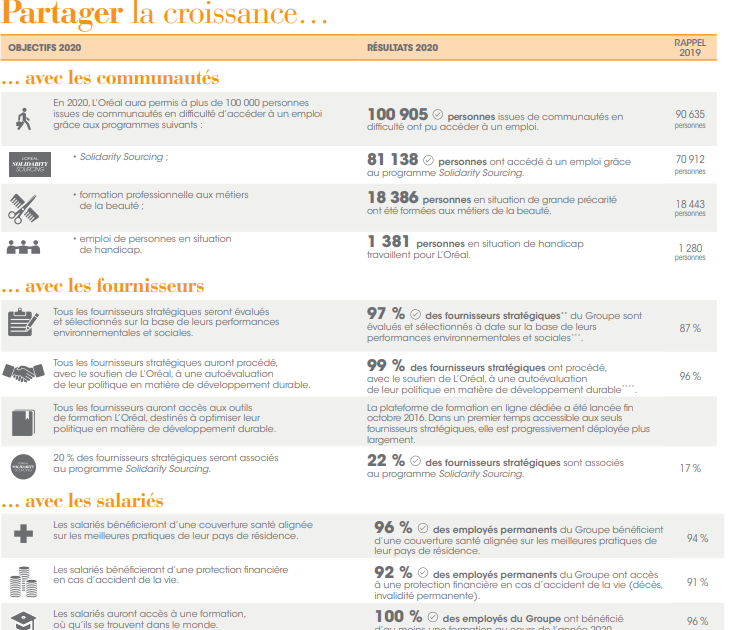 Résultats de la politique RSE de L’Oréal publiés dans son bilan 2013 – 2020